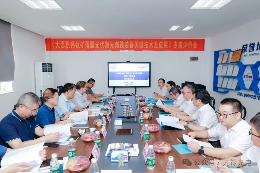 為積極響應鈣鈦礦太陽能電池規?;苽涞漠a業需求,武漢元祿光電技術有限公司(以下簡稱“元祿光電”)于2024年8月13日在武漢召開《1200mm×2400mm鈣鈦礦薄膜光伏激光刻蝕裝備關鍵技術及應用》科技成果評價會。該項技術聚焦大面積鈣鈦礦太陽能激光成套裝備的研究,拓展了激光光刻局域成型方法,成功研發出世界首臺套“20振鏡頭大幅面鈣鈦礦高速激光刻蝕成套設備”。